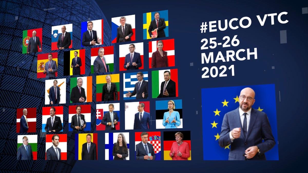 Koronapandemiatilanne ja rokotteet olivat vahvasti esillä 25. maaliskuuta järjestetyssä Eurooppa-neuvoston jäsenten videokokouksessa. Muita kokouksen aiheita olivat sisämarkkinat, teollisuuspolitiikka, digitalisaatio ja talous, itäinen Välimeri sekä informaatiokohtana Venäjä. Lisäksi videoyhteyksin järjestettiin Eurohuippukokous sekä erillinen keskustelu Yhdysvaltain presidentti Joe Bidenin kanssa.