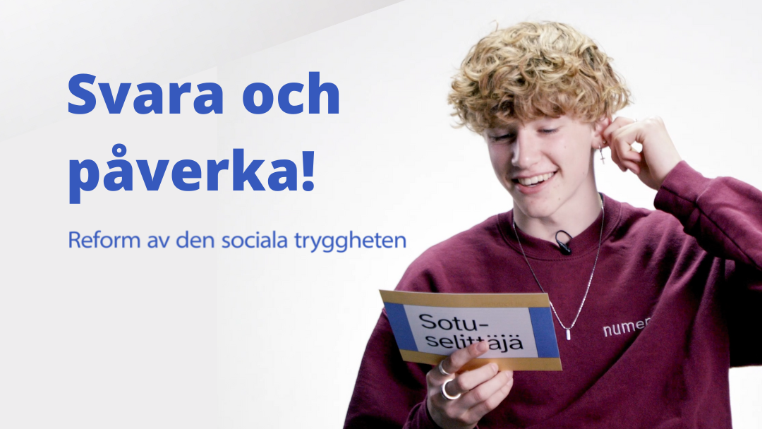 Barn och unga hörs i samband med beredningen av reformen av den sociala tryggheten. Unga kan framföra sina åsikter om den sociala tryggheten och påverka reformen genom att besvara enkäten före den 31 oktober 2022. Enkäten är avsedd för unga i åldrarna 13–20.