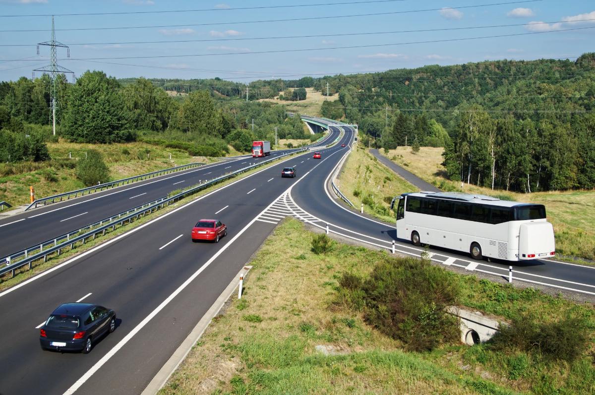 Bussi ja autoja tiellä (Kuva: Shutterstock)