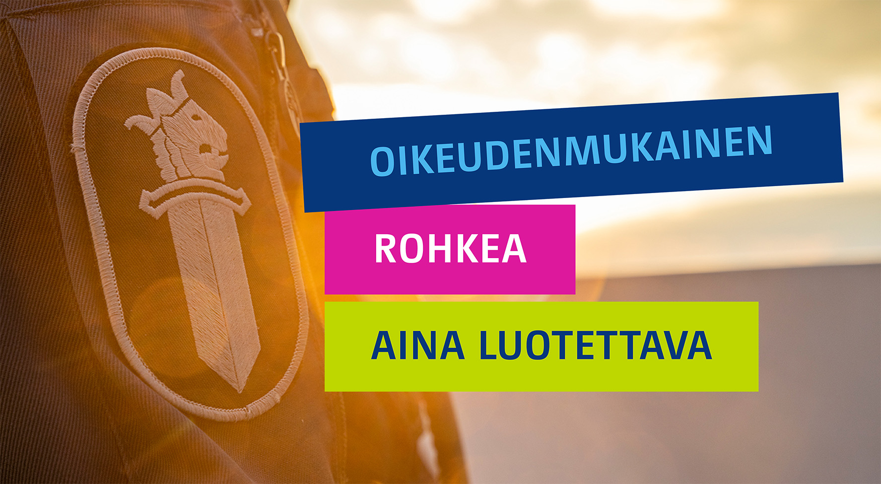 Poliisin vahvistetut arvot ovat oikeudenmukainen, rohkea ja aina luotettava.